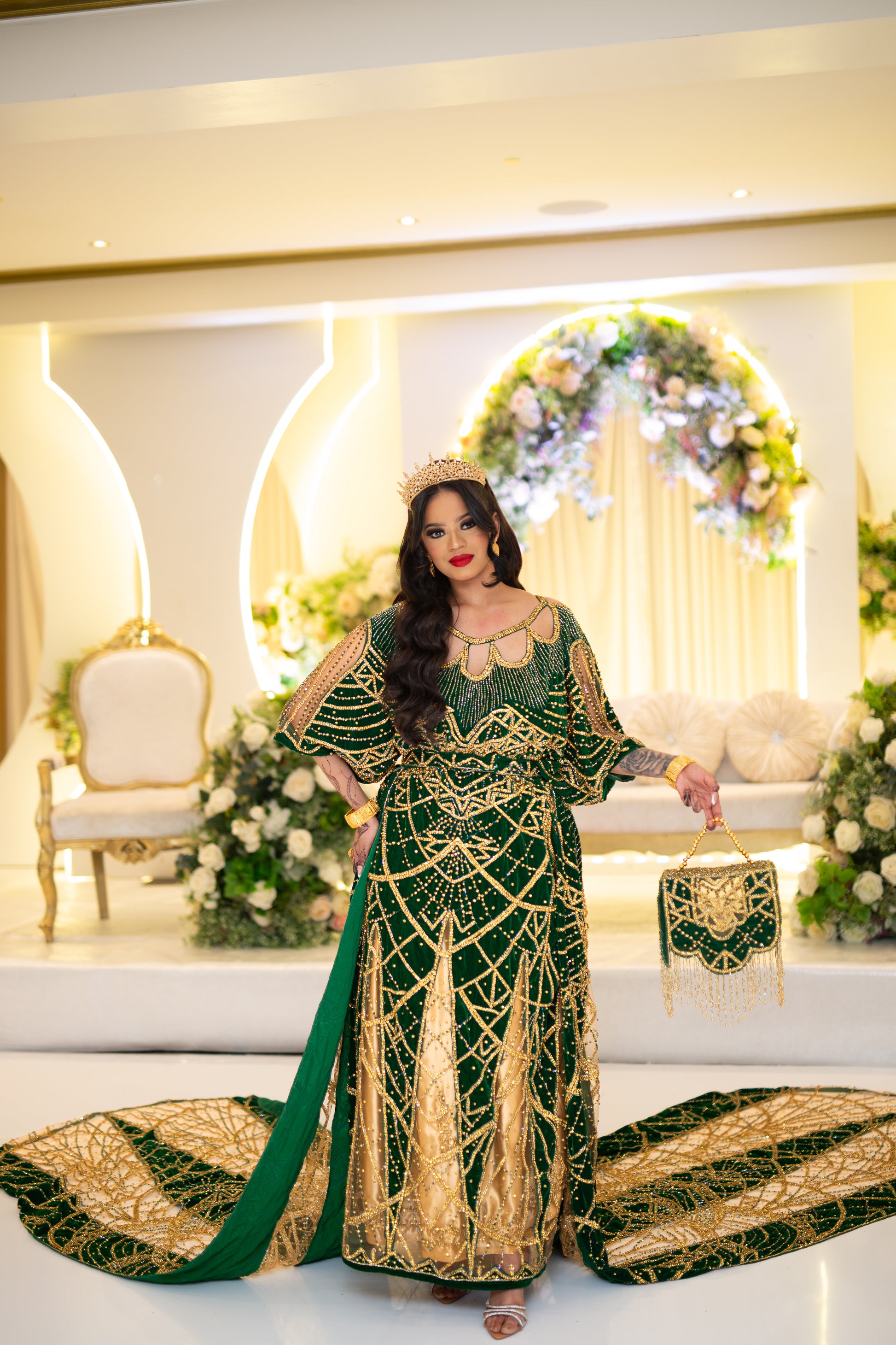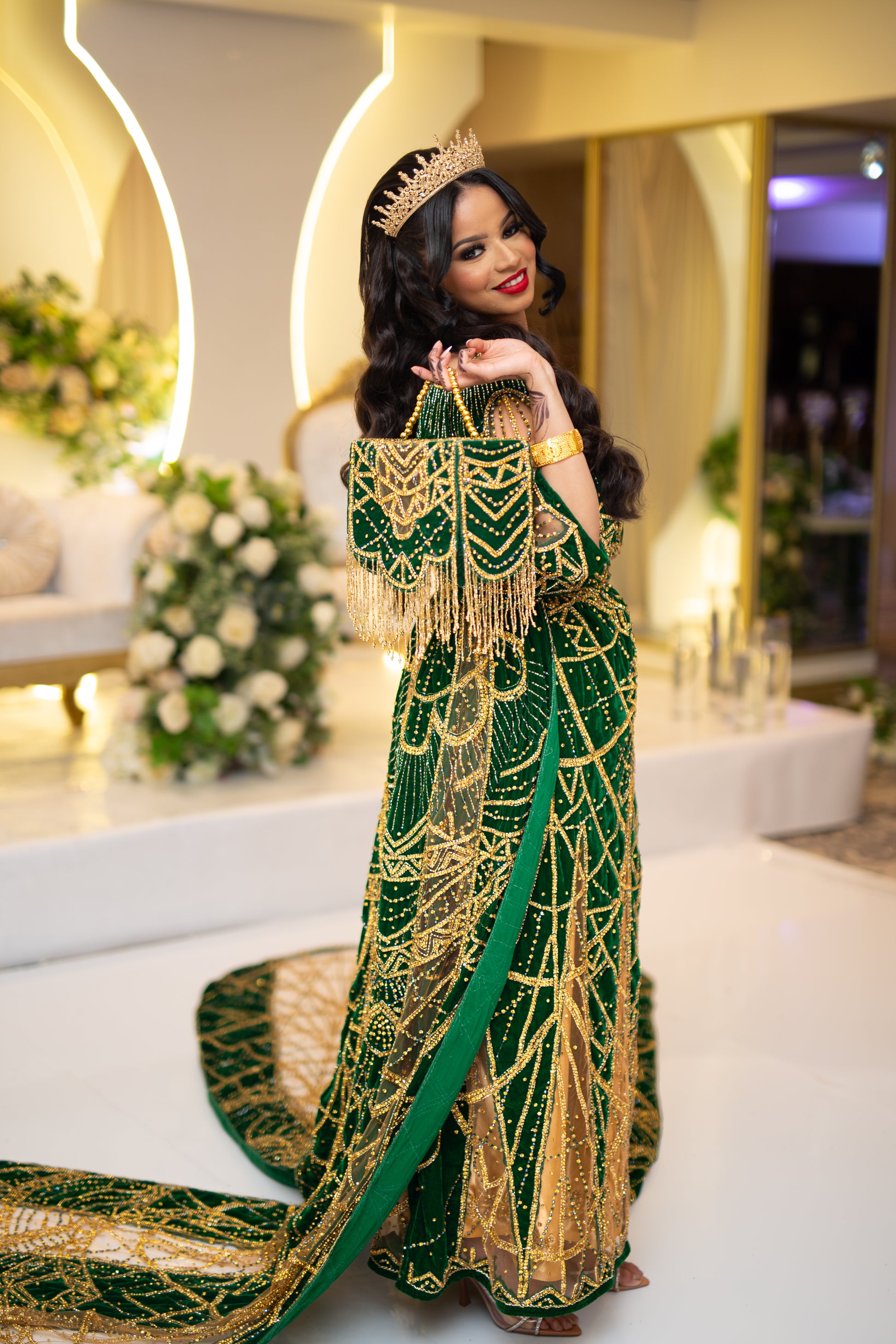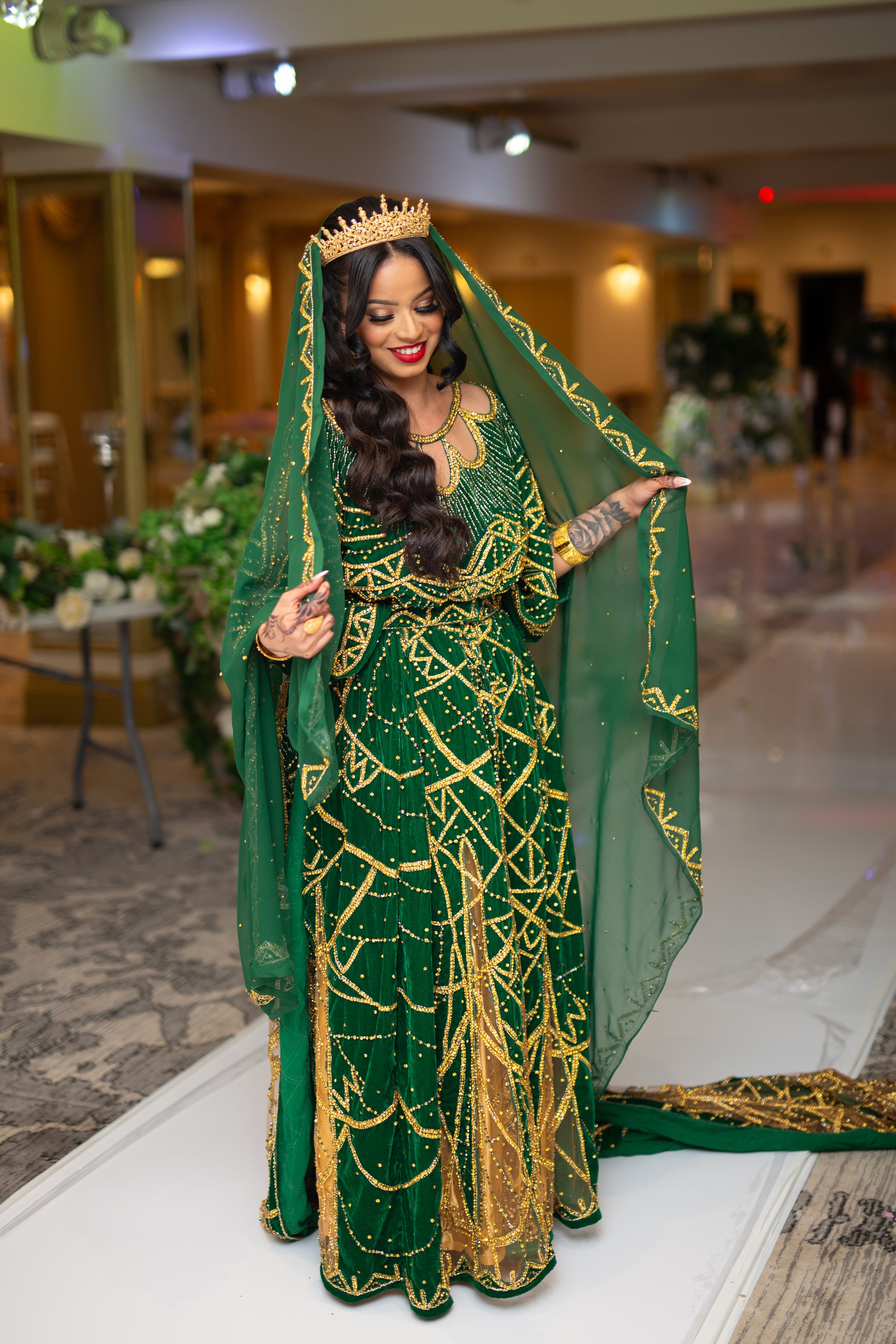 This Somali Bridal Dirac is embellished with High-end crystal stones paired with Gorgora and Gorbisar